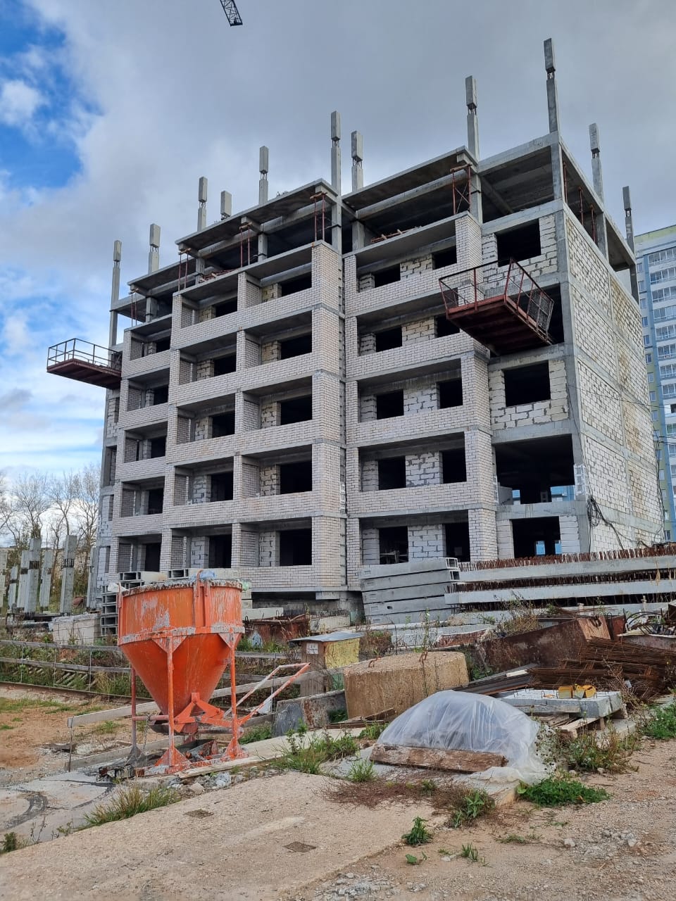 Конструктив: Рамно-каркасная схема здания, фундаменты-свайные с монолитным ростверком, наружные стены из газосиликатных блоков, внутренние стены из силикатного кирпича, перегородки из гипсовых пазогребневых плит, перекрытие из сборных железобетонных пустотных плит, кровля – рулонная, наружная отделка фасада – тонкий наружный штукатурный слой по утеплителю с покрытием гидрофобной краской.